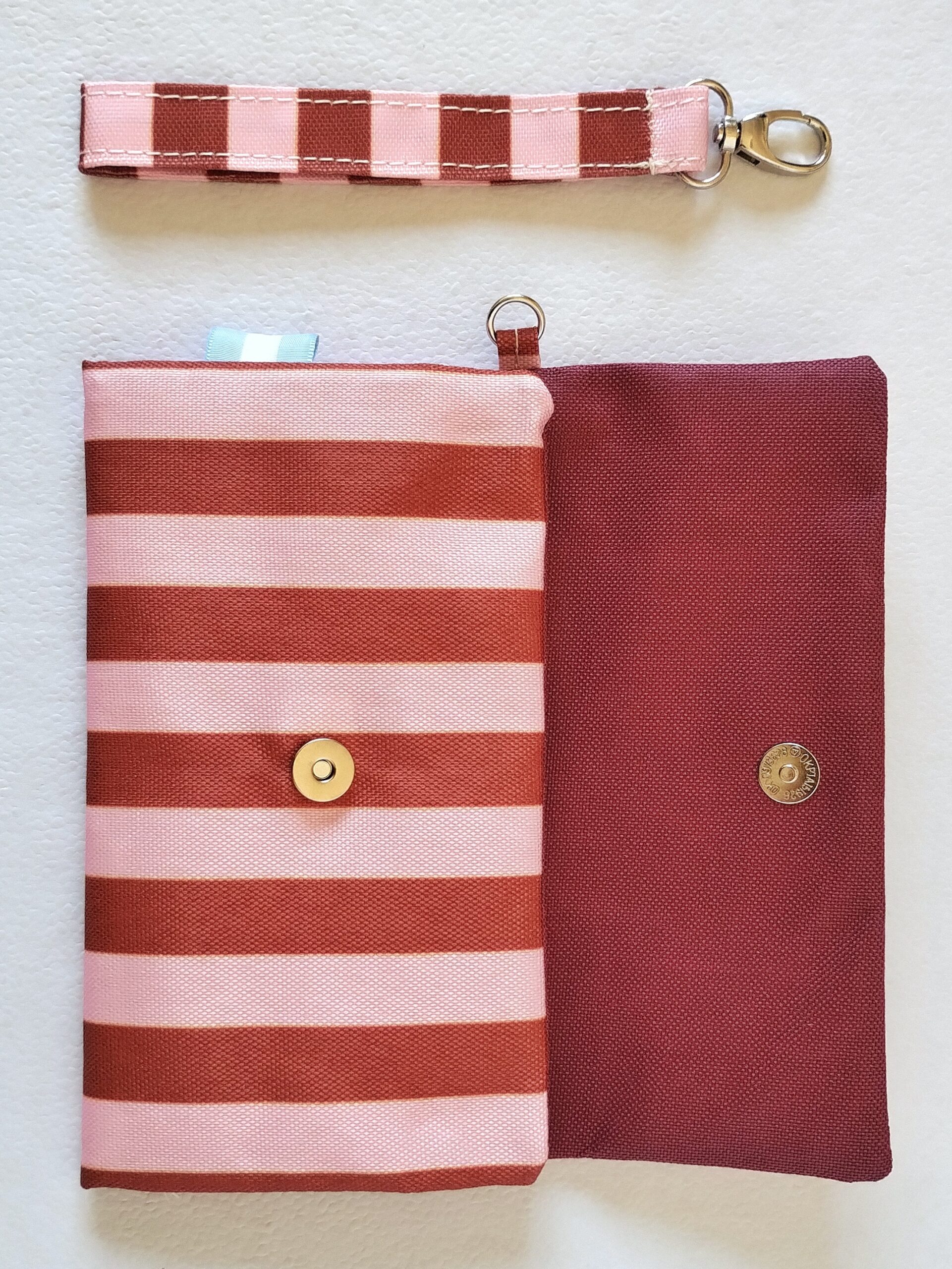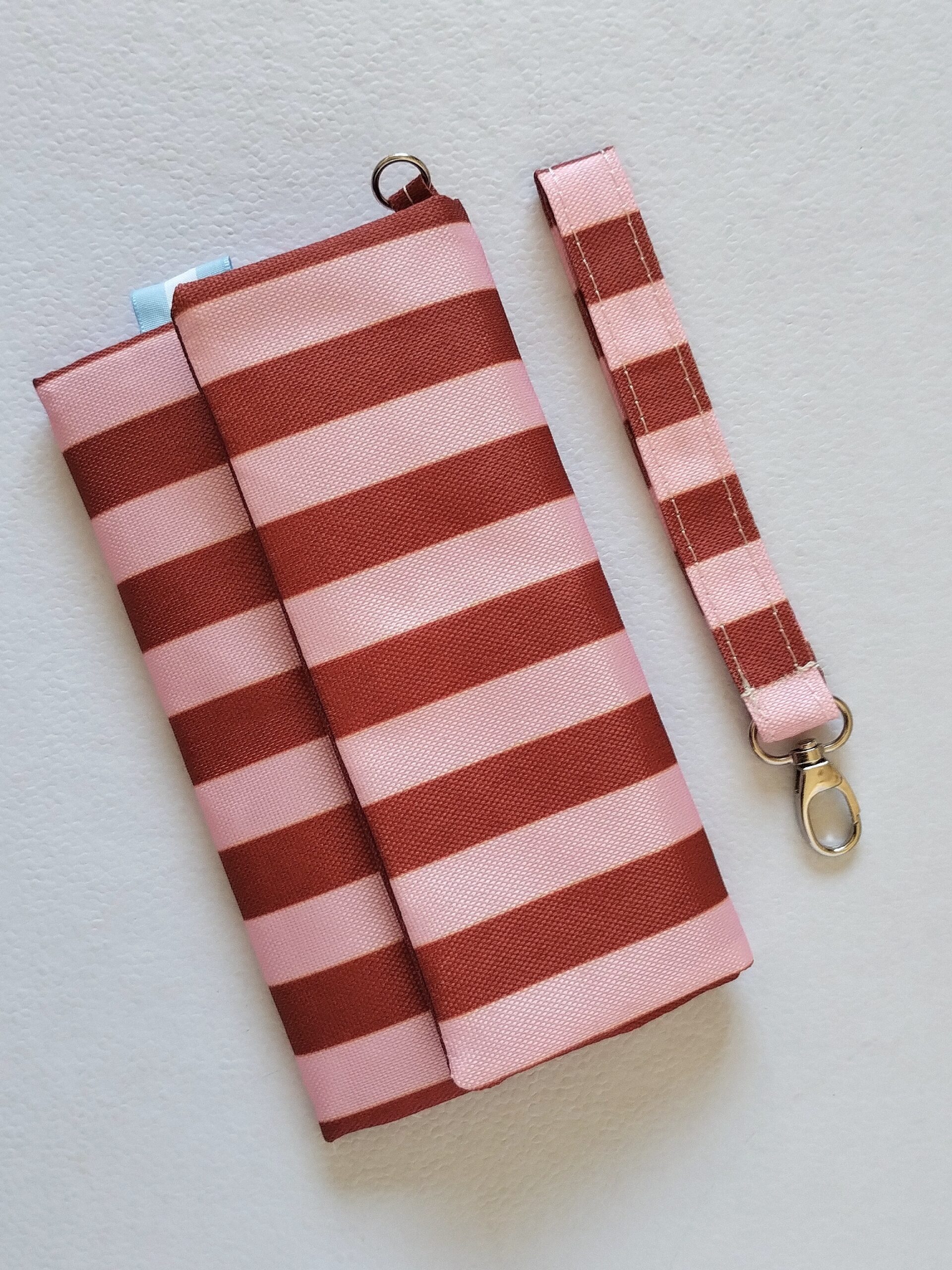 Billetera alargada con espacio extra y formato compacto. Funcional, versátil y confeccionada en tela resistente al agua.