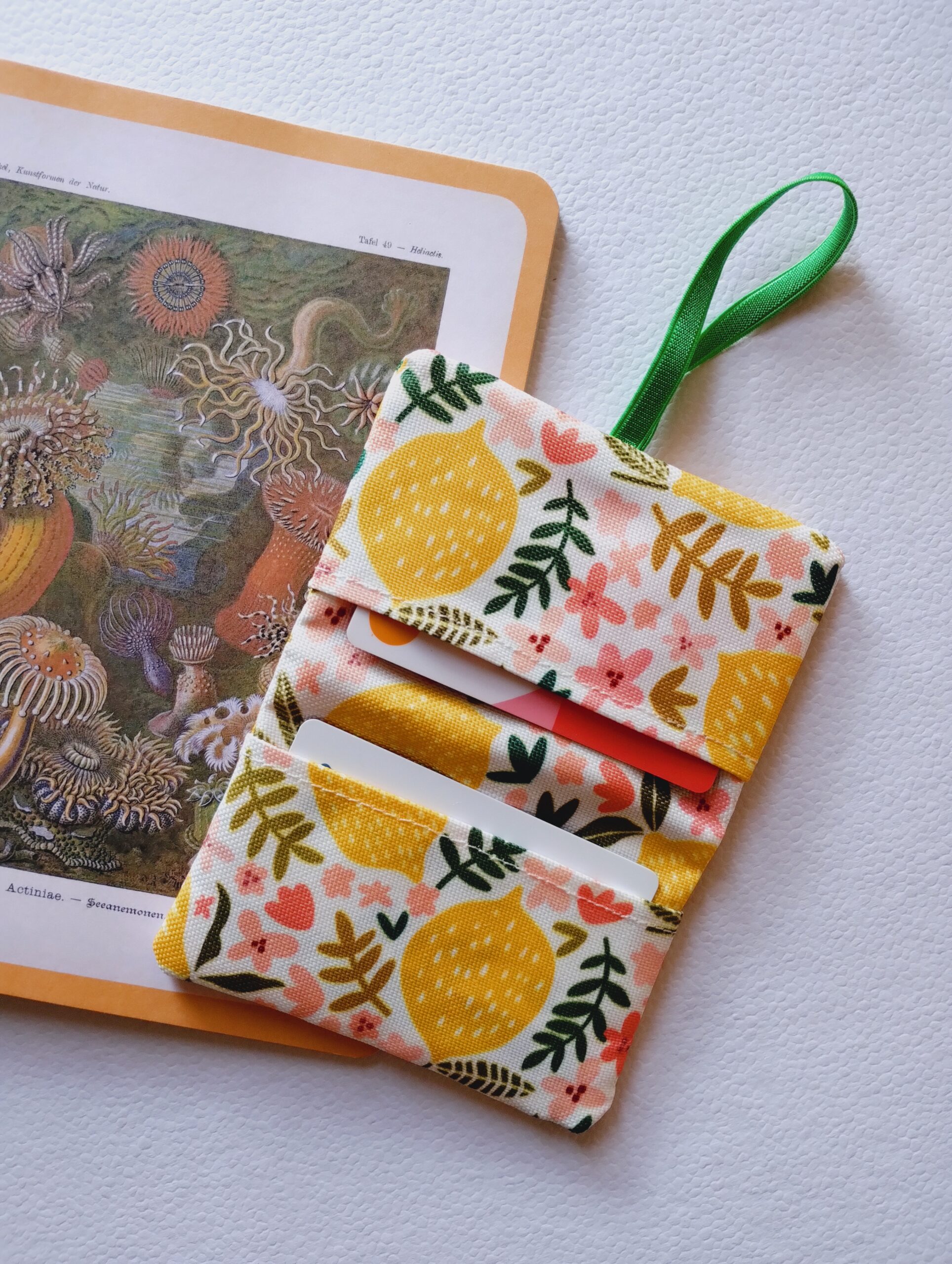 Tarjetero de 4 bolsillos, práctico y seguro, con cierre de elástico chato.