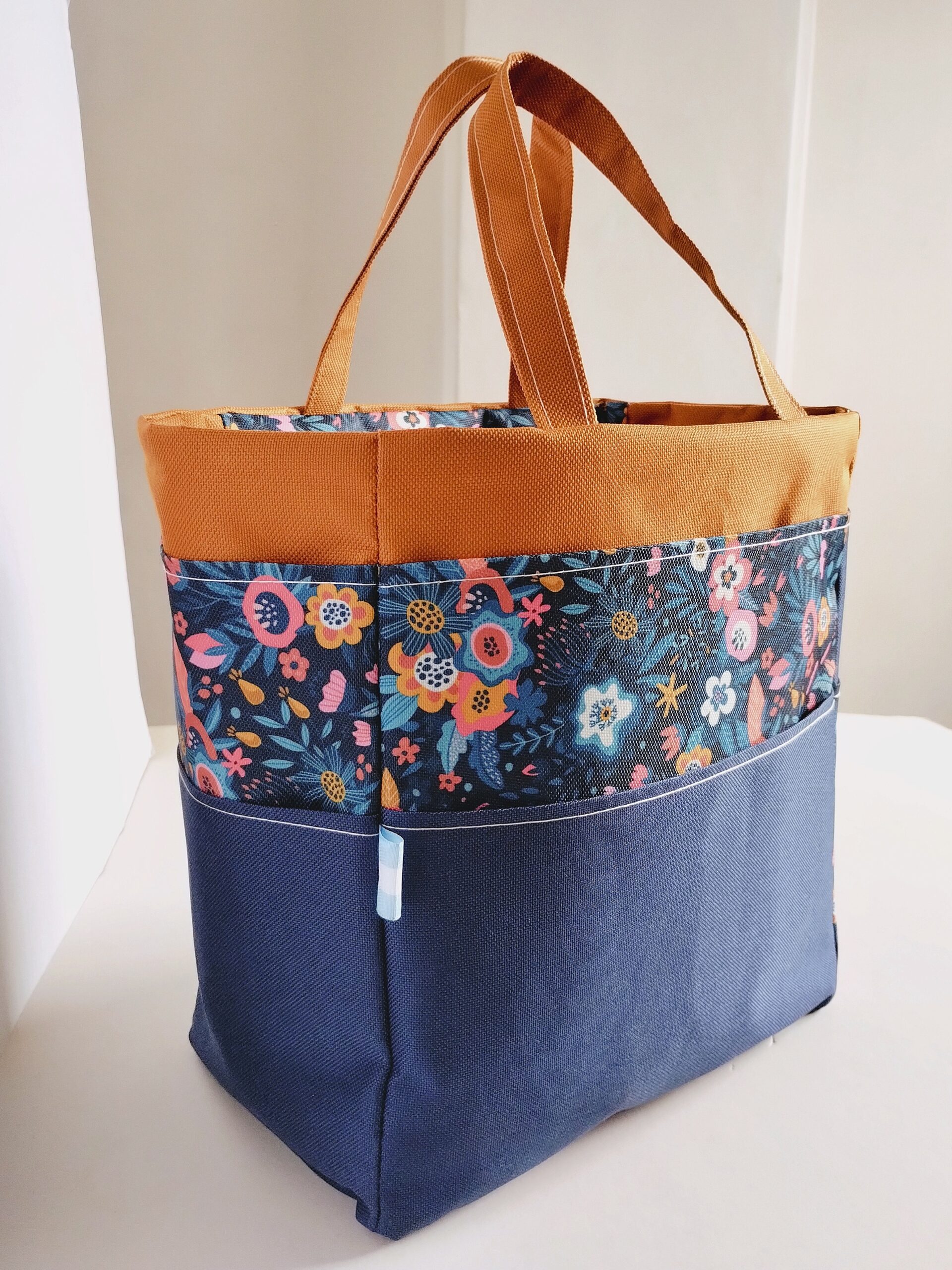 Canasta multiuso reversible, con 8 bolsillos de distintos tamaños, práctica y resistente.