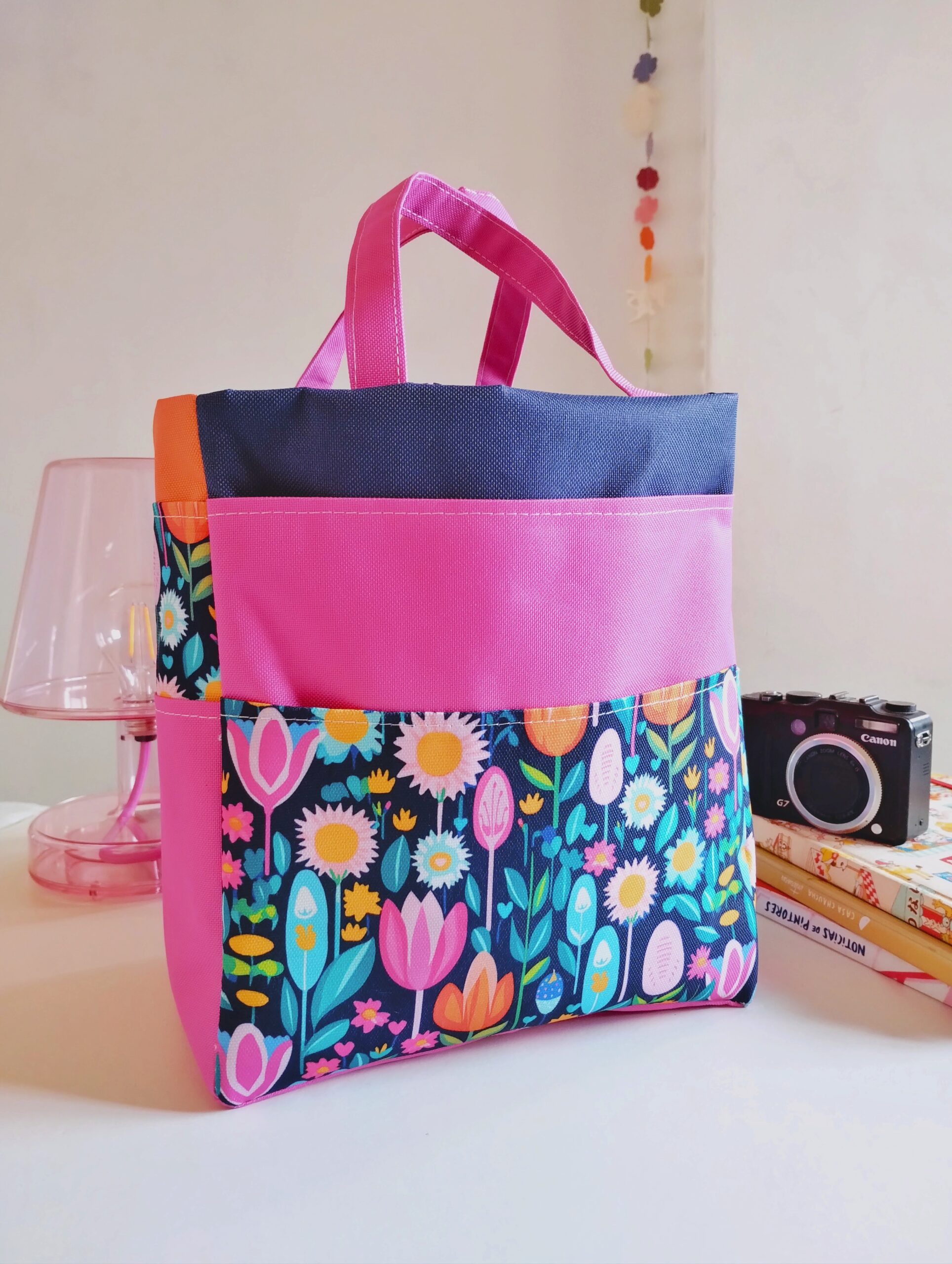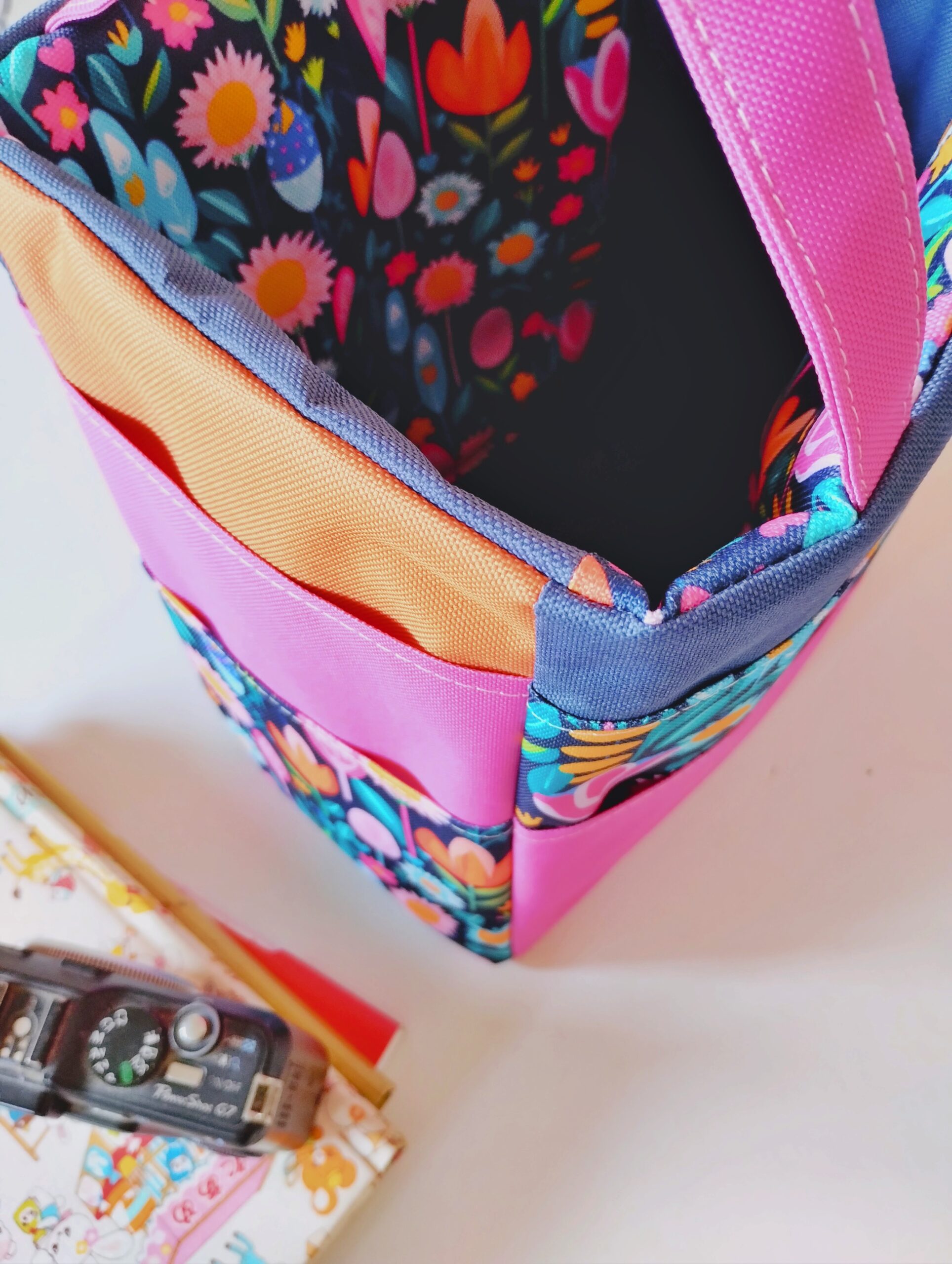 Canasta multiuso reversible, con 8 bolsillos de distintos tamaños, práctica y resistente.