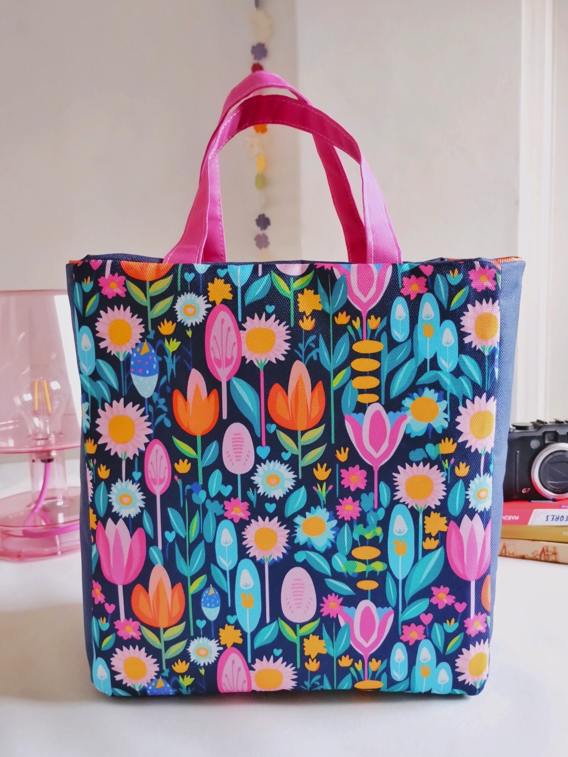 Confeccionada en telas resistentes al agua, de fácil mantenimiento y apta para lavarropas, no se deforma gracias a las placas aislantes ubicadas entre las telas en cada cara y en la base.