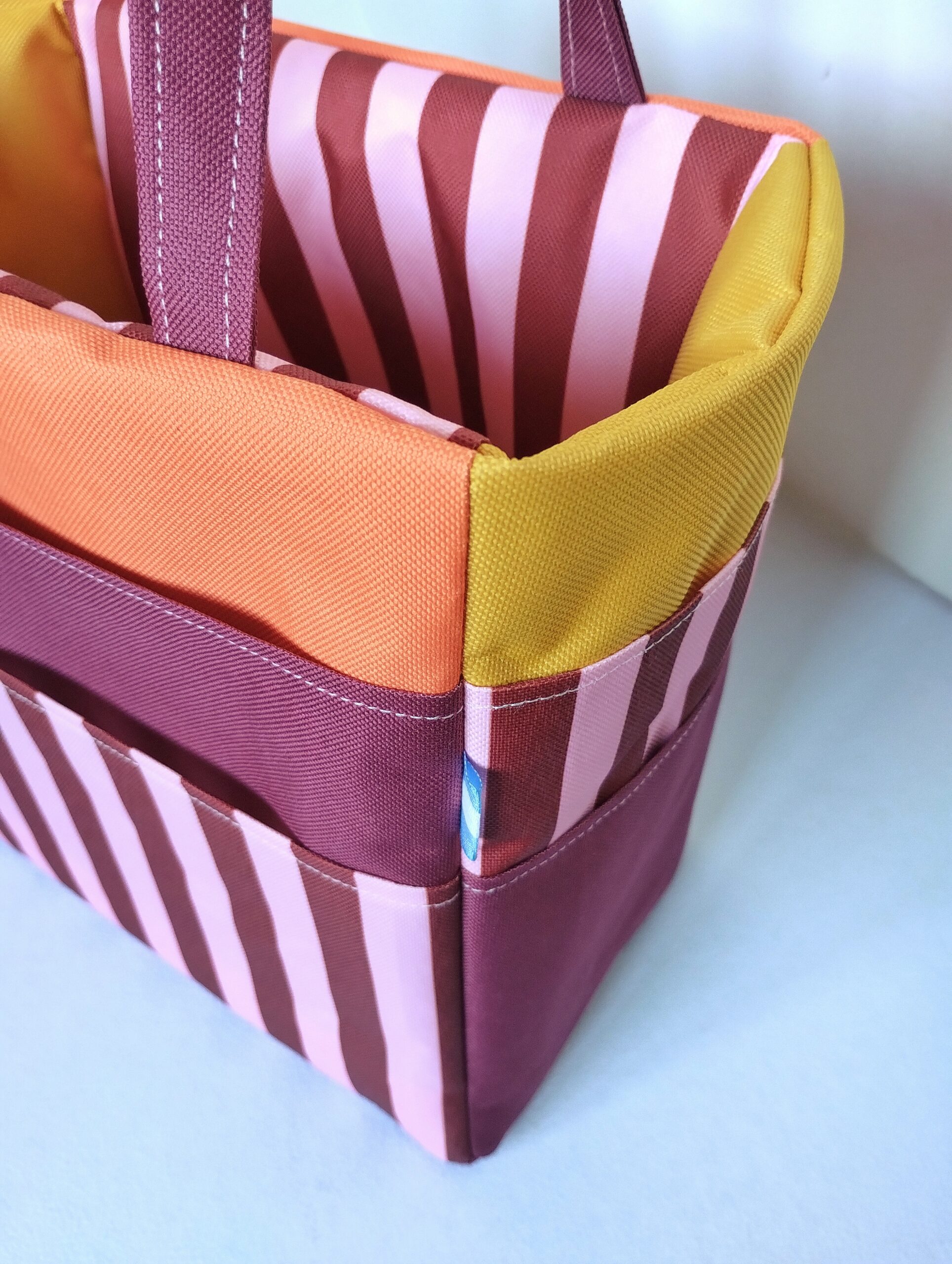 Canasta multiuso reversible, con 8 bolsillos de distintos tamaños, práctica y resistente.