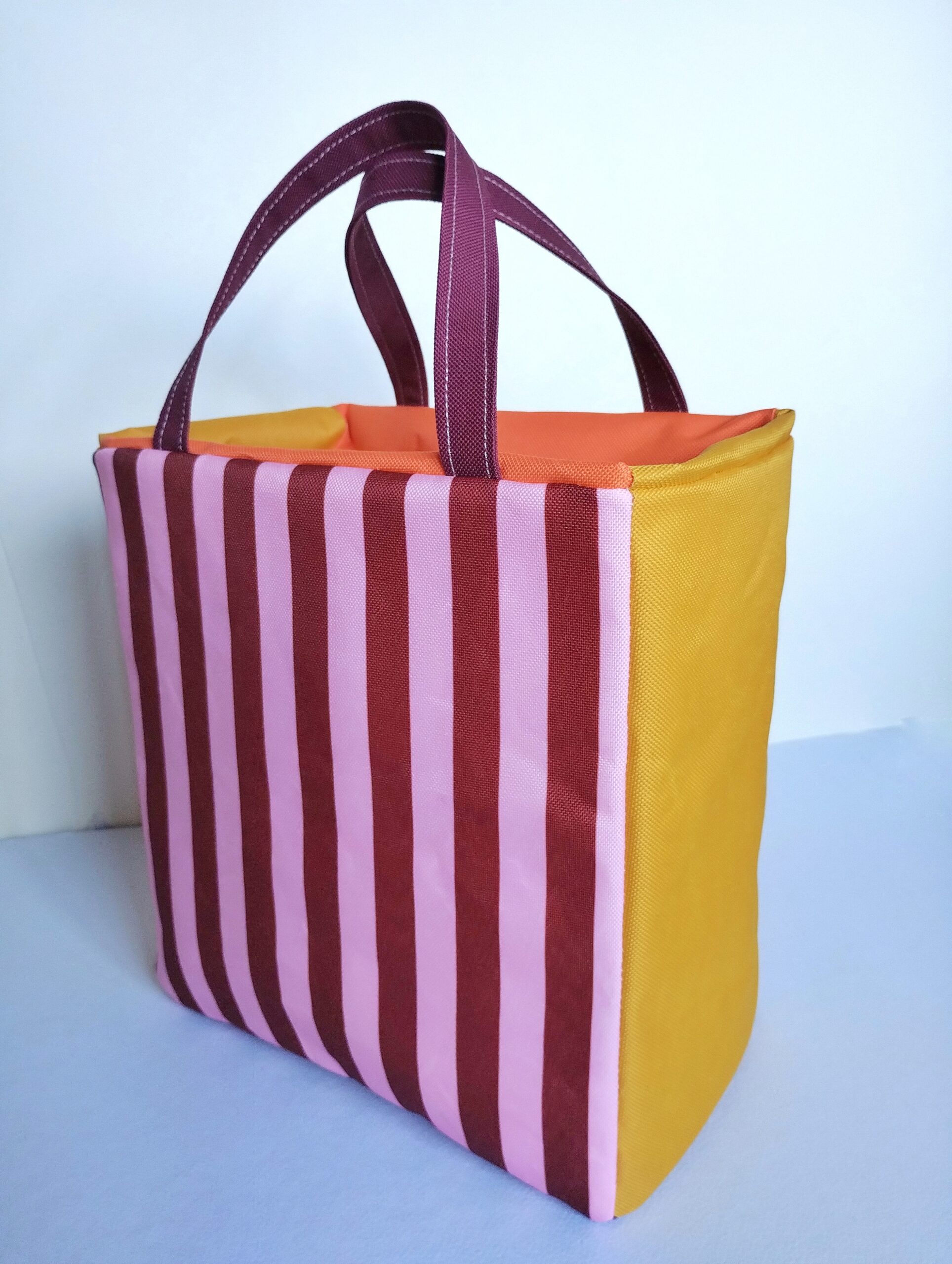 Confeccionada en telas resistentes al agua, de fácil mantenimiento y apta para lavarropas, no se deforma gracias a las placas aislantes ubicadas entre las telas en cada cara y en la base.