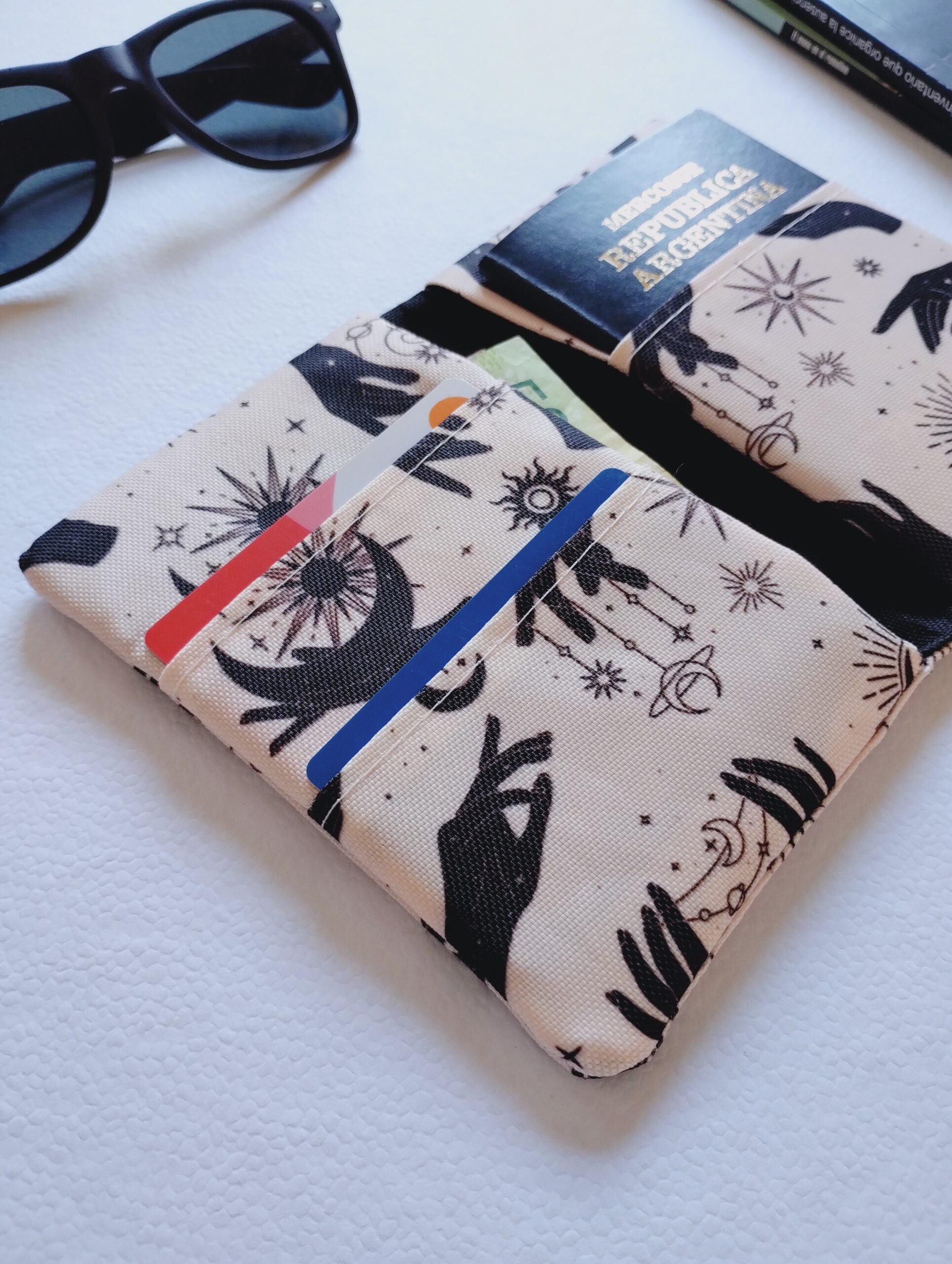 Funda porta pasaporte y documentos resistente al agua, con múltiples compartimentos para mantener todo organizado y protegido.