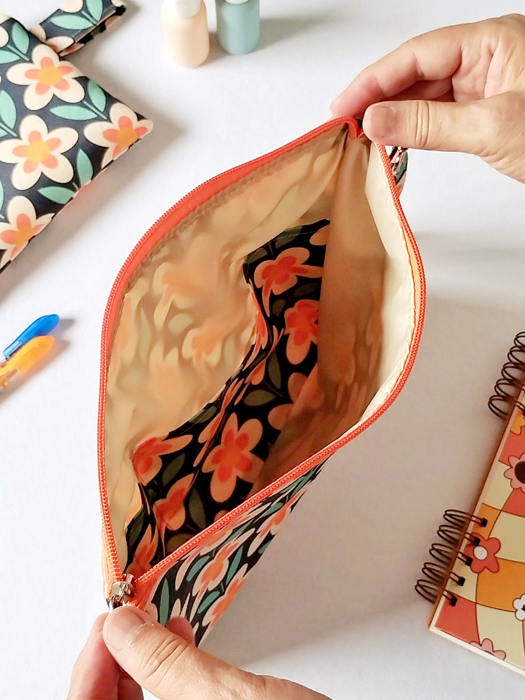 Perfecto para cargar productos de higiene, muda de ropa, pañales y más. En su interior cuenta con dos bolsillos y un espacio adicional para pequeños elementos como lapiceras, agujas de crochet, termómetro, etc.