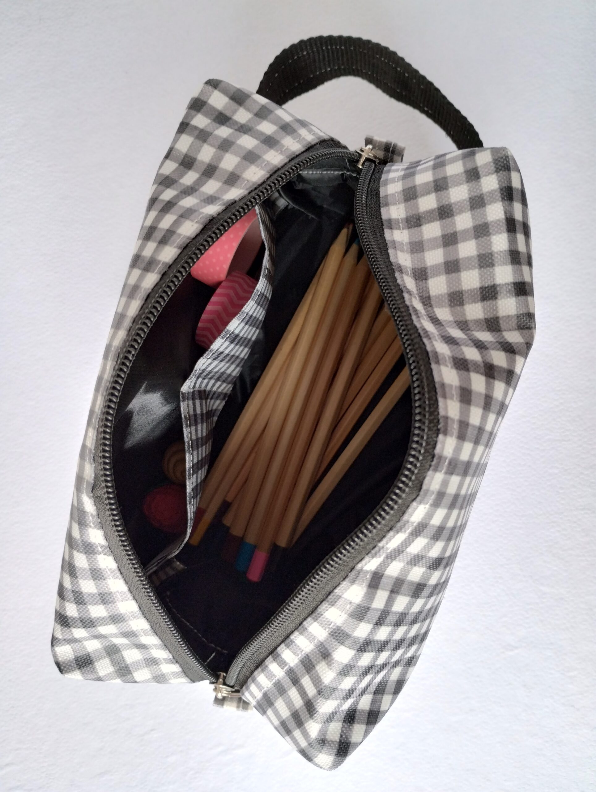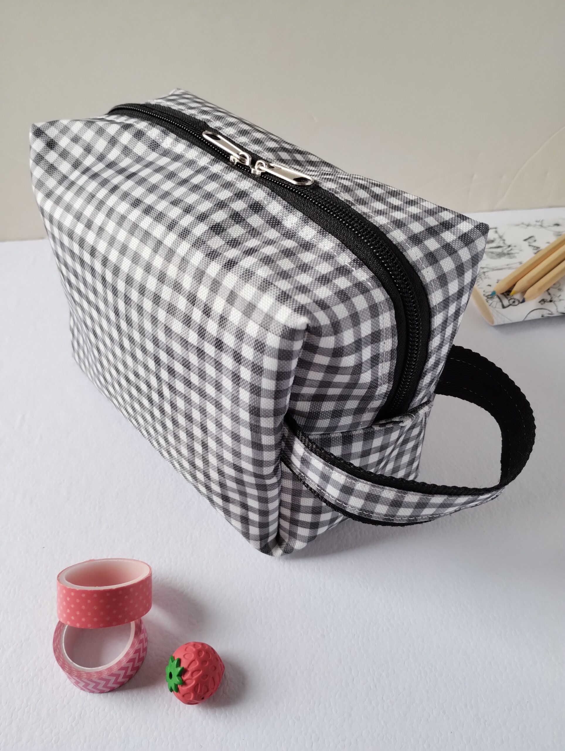 El neceser que estabas buscando, confeccionado en telas resistentes al agua tanto en su exterior como en su forrería.